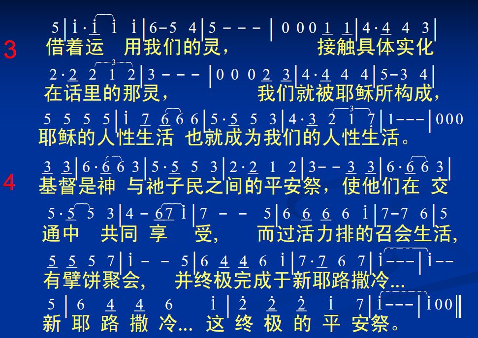 基督是神与祂子民之间的平安祭,使他们在交通中共同享受,而过活力排的召会生活,有擘饼聚会,并终极完成于新耶路撤冷这终极的平安祭。