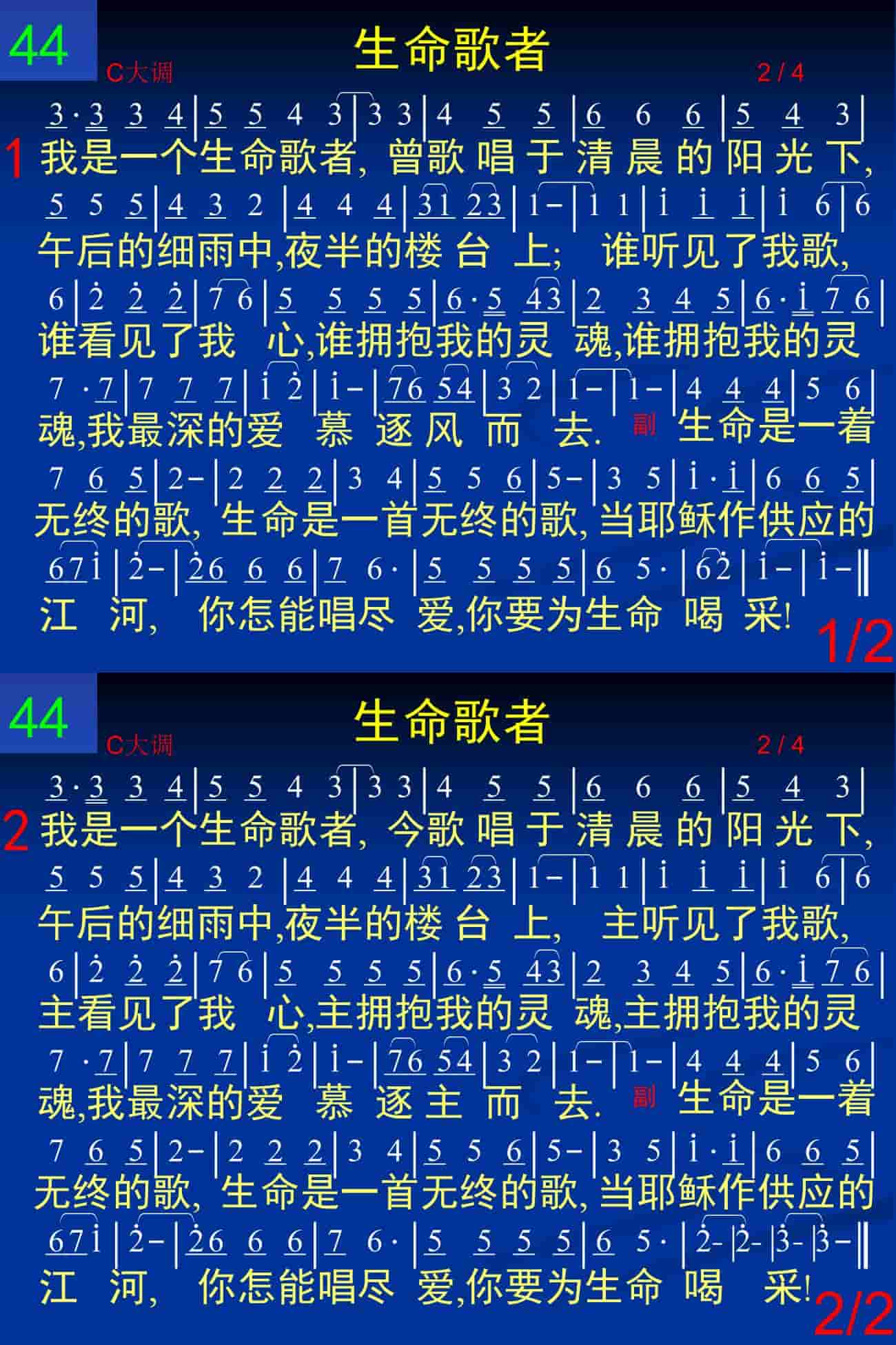 我是一个生命歌者,今歌唱于清晨的阳光下,午后的细雨中,夜半的楼台上,主听见了我歌,主看见了我心,主拥抱我的灵魂,主拥抱我的灵魂,我最深的爱慕逐主而去。